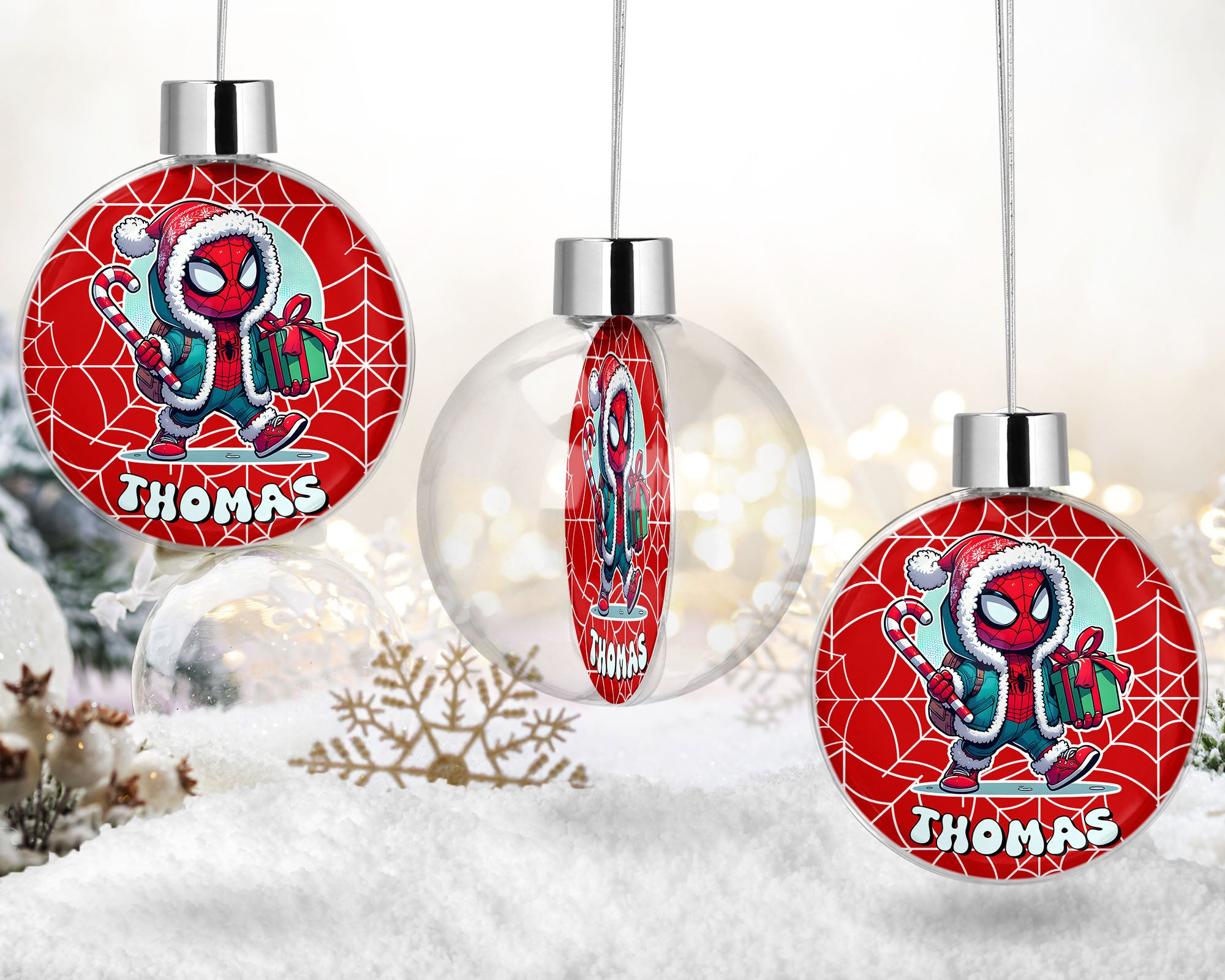 Décoration de Noël Personnalisable - Boule Spiderman avec Prénom